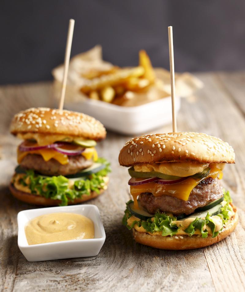 Da darf natürlich auch das perfekte Super-Bowl-Essen nicht fehlen. Egal ob deftig oder süß, lecker muss es sein. Serviert werden typische Gerichte wie Burger, Hot Dogs, Chicken Wings und natürlich viel Barbecue-Soße.